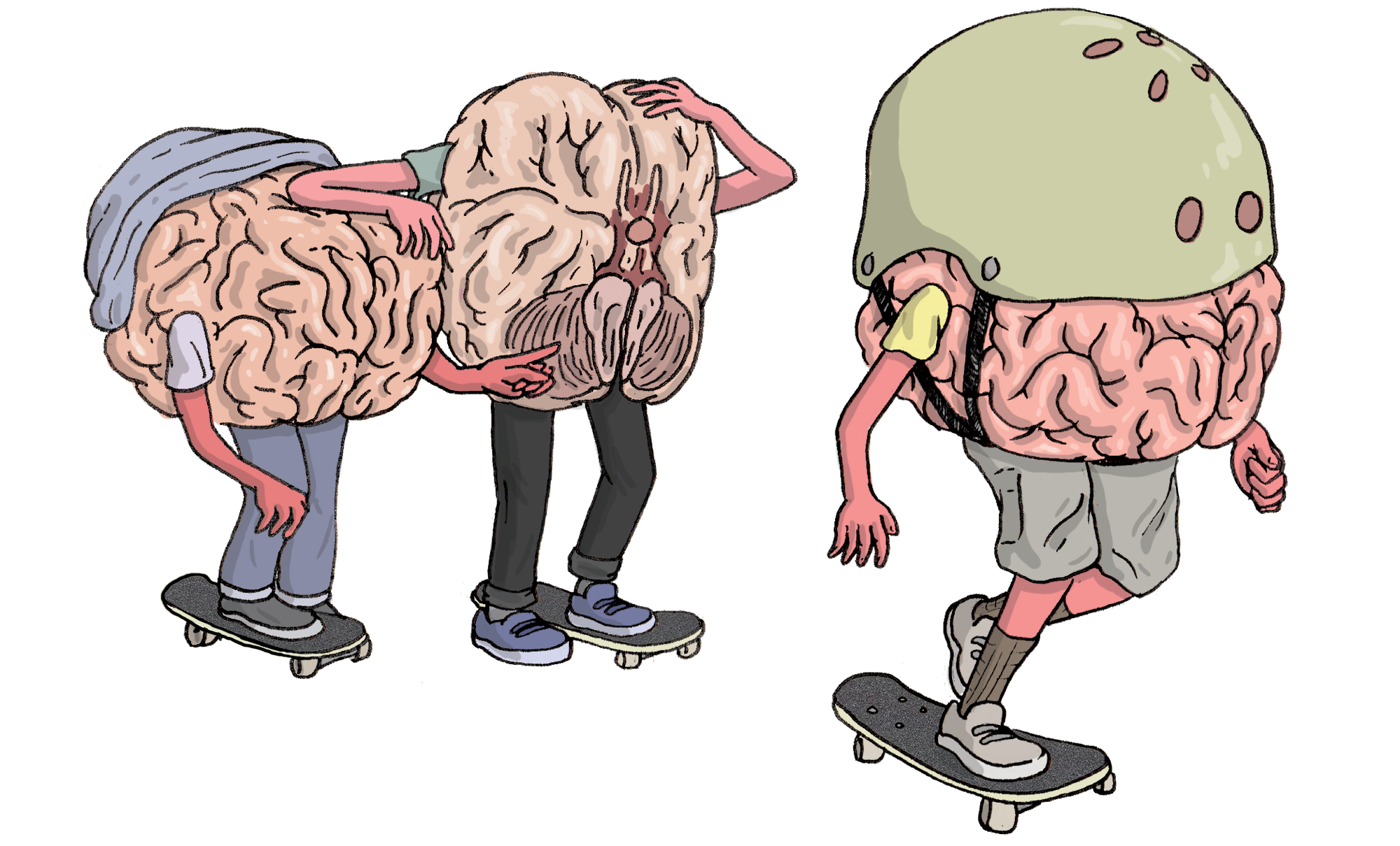 Instead, I was directed to the Mayo Clinic’s website, one of their research partners, but found no information on how the height of a fall or the surface of impact (since compared to football players falling on grass, skateboarders often slam on with concrete) plays in trauma, and little on how a lack of proper post-injury recovery will amplify the risk of CTE. However, they did stress the importance of abstaining from drugs and alcohol immediately after trauma and the role of helmets in preventing concussions.